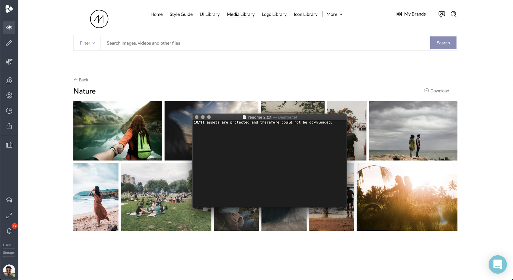 To enhance the security standards of Frontify, we added a little functionality to the download of Collections. Given that you’re downloading a Collection with protected assets included, you’ll receive a zip-file with a little README file included; this gives you a disclosure about the number of protected assets included in the Collection unavailable for download. The unprotected assets will, of course, be part of the zip-file.