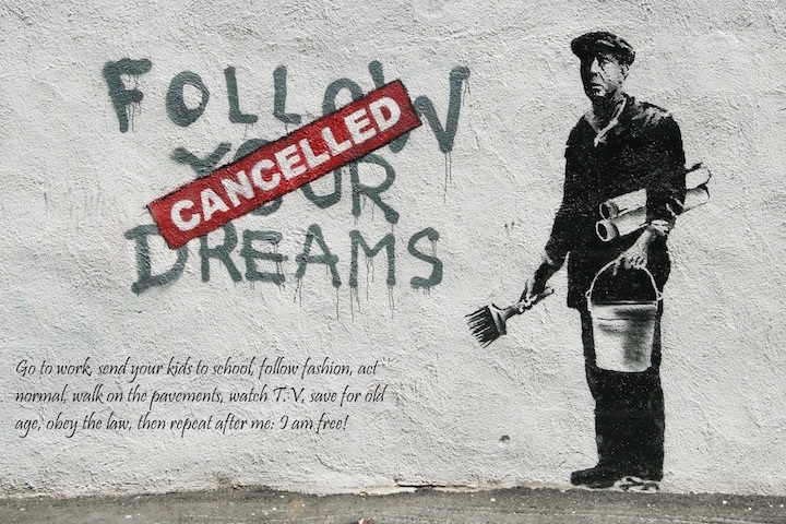 He is also a sculptor of some note, and an installation artist. In 2015, he created his most ambitious project to date on the seafront at Weston-super-Mare in the UK. ‘Dismaland’ is 2.5 acres of poignant pieces, peculiar rides, and activities in a parody of Walt’s famous fun fair, except this is like a walk through a bleak, muddy pond, not a place of happiness at all.